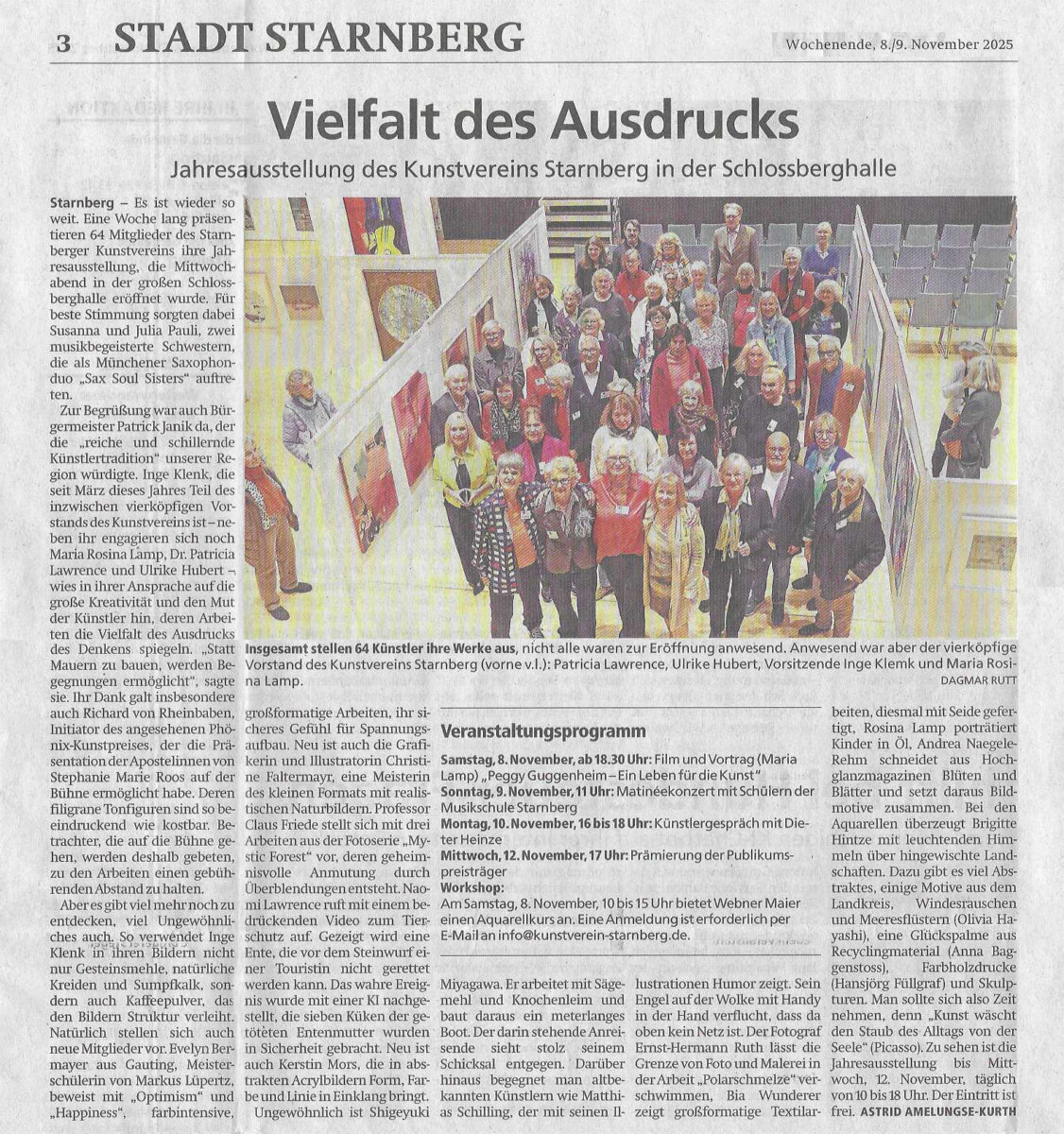 Münchner Merkur, Artikel im Lokalteil zur Jahresausstellung der Mitglieder, WE 8./9. November 2025