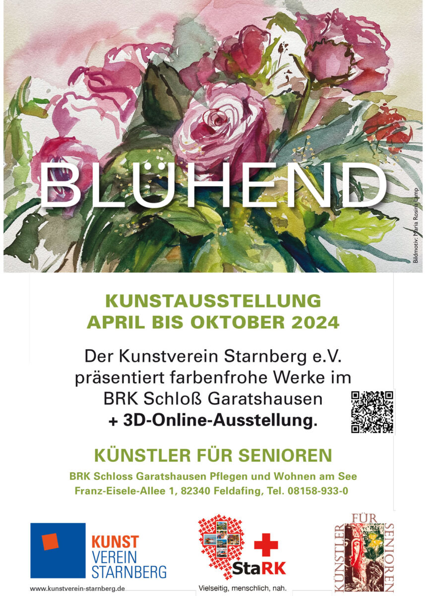 Das Ausstellungsformat „Künstler für Senioren“ im BRK Schloss Garatshausen, Pflegen & Wohnen am See, feierte sein 30 jähriges Bestehen. Unter der Leitung von Rita Enzinger in Zusammenarbeit zeigen Künstlern des Vereins wieder zahlreiche Werke. Ein Highlight war des Vollmondpicknick im Schlossgarten.